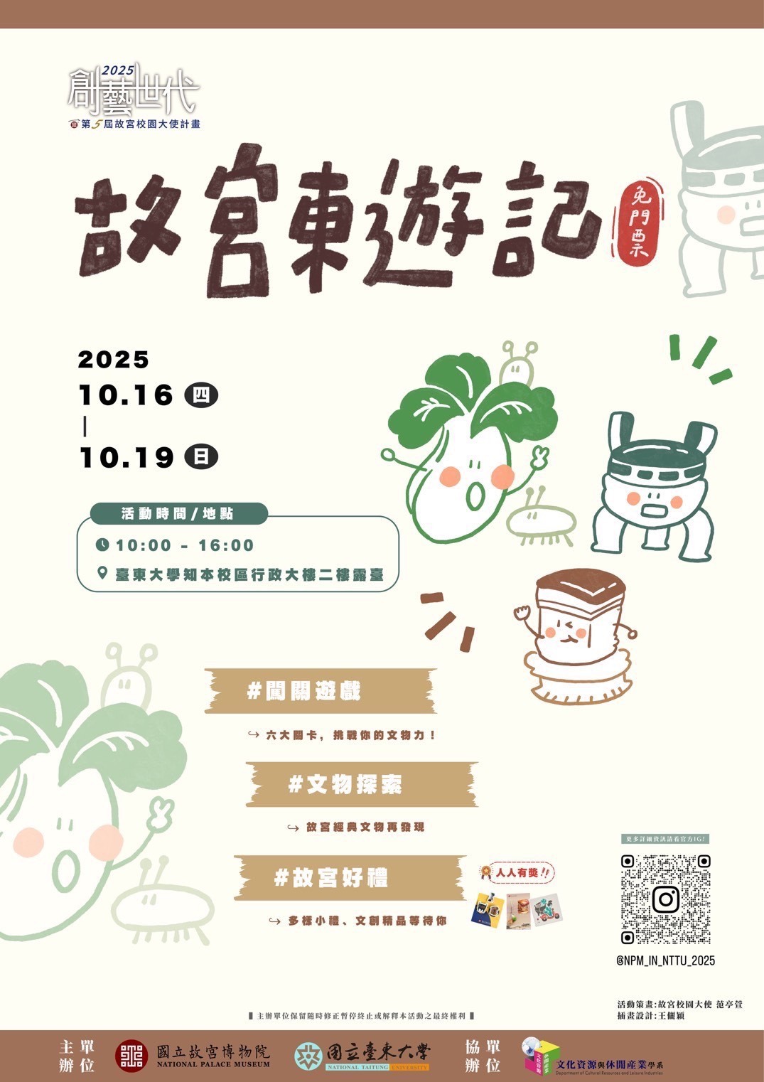 【故宮東遊記】10/16(四)-10/19(日)10:00-16:00明天即將正式開始!!!歡迎踴躍參加